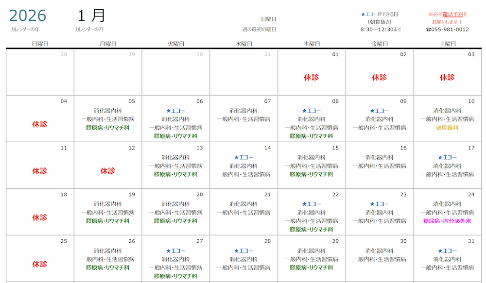 ※午後の診療開始時間は、検査の進行状況などにより前後することがあります。
