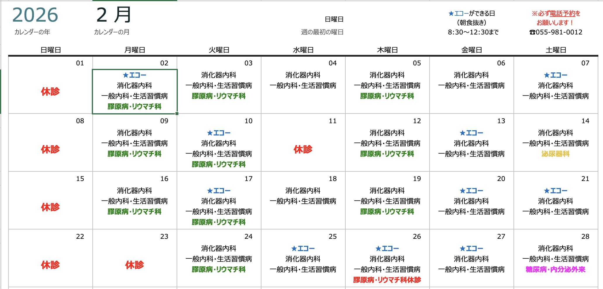 ※午後の診療開始時間は、検査の進行状況などにより前後することがあります。